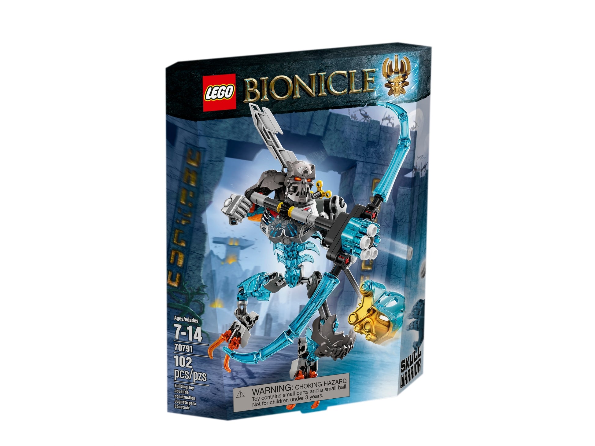 LEGO 70791 Skull Warrior is a 102 piece Bionicle set released in 2015. It features a Skull Warrior with a Freeze Bow rapid shooter, a battle bash function, a hook blade, a Skull mask with a pop-off trigger, and a shell with metallic-effect chest decoration.