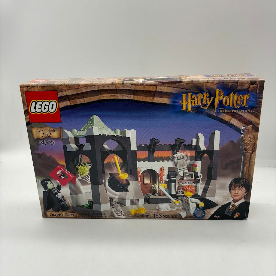 LEGO 4705 Snape's Class was a 163 piece Harry Potter set with 3 minifigs released in 2001. It is based the classroom in which Professor Snape teaches potions and includes Ron Weasley, Professor Snape, and Peeves minifigures.